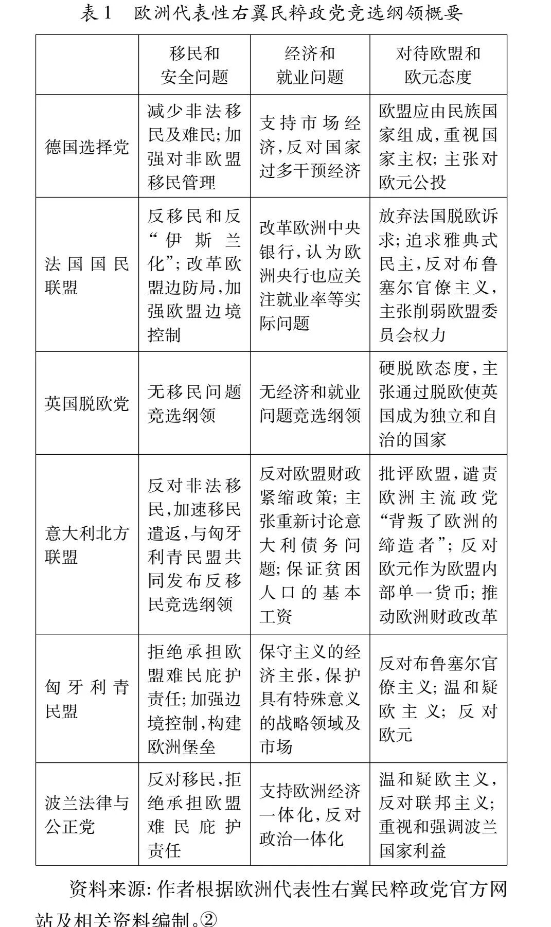 (一)欧洲右翼民粹政党主要竞选纲领及宣传策略